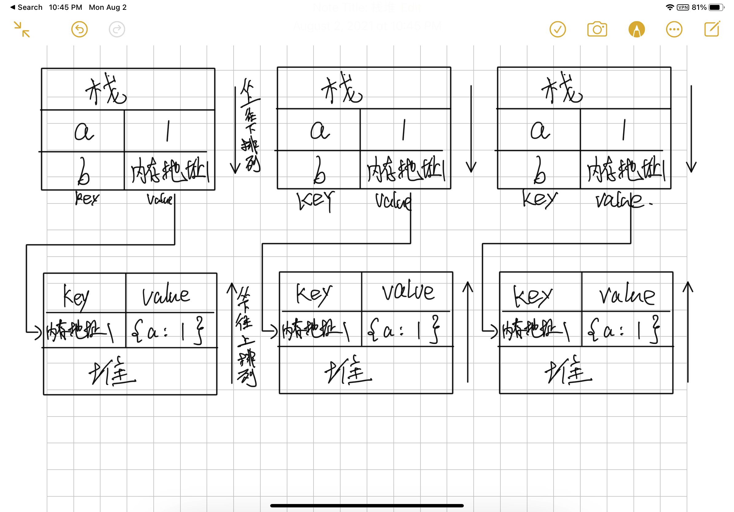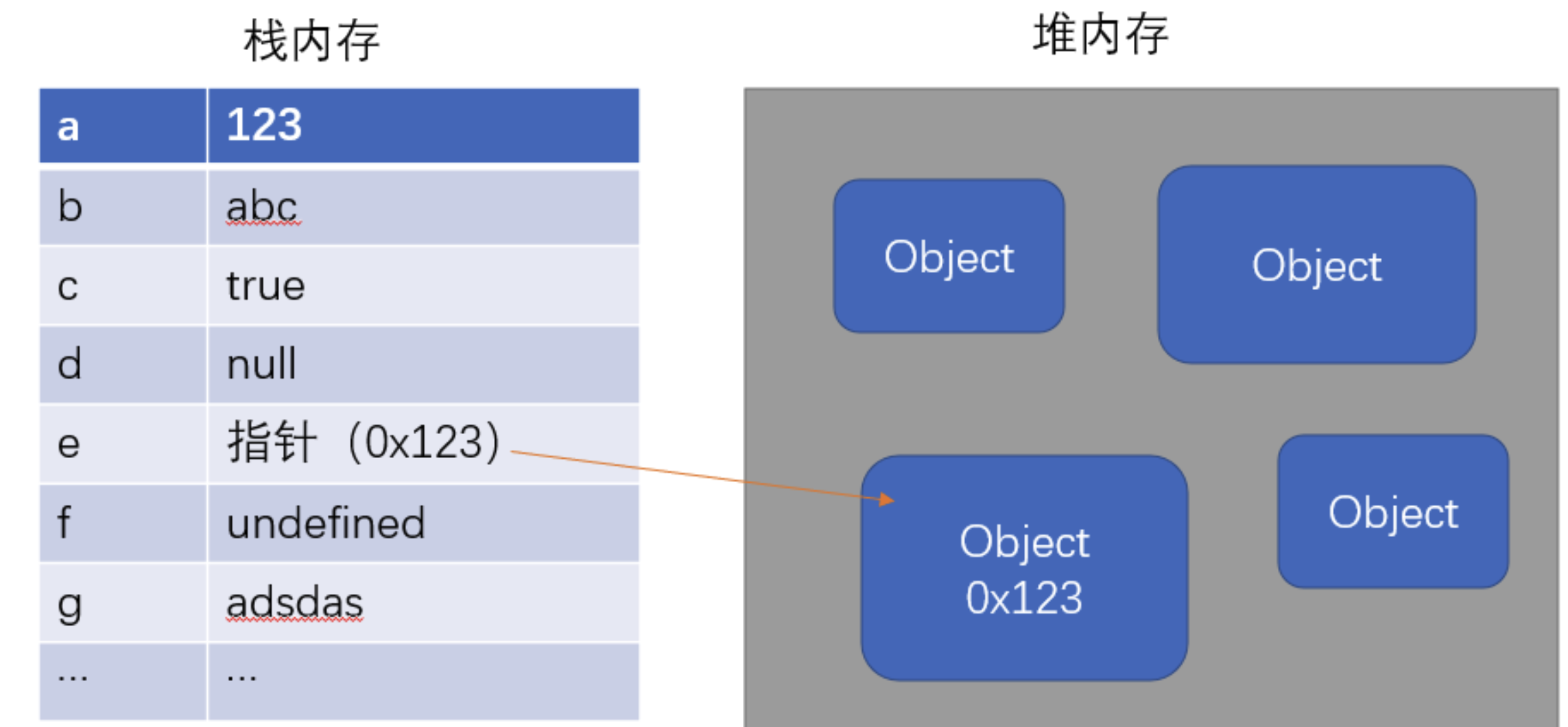 - 引用类型,(由于json或object存储到栈中会 太大,复制太慢,所以)通过一个堆地址,存储在堆中。需要的时候通过地址从堆查找(所有的计算机程序设计都是这个思想)