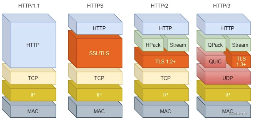 - HTTP2(从上往下:HTTP2->TCP->二进制分帧->IP)
